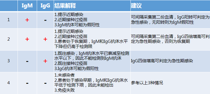 單純的新冠病毒IgM、IgG抗體檢測結果不能作為新冠病毒感染確診和排除的依據,但與新冠病毒核酸、抗原協同檢測可用于輔助診斷新冠病毒感染。