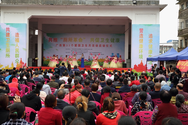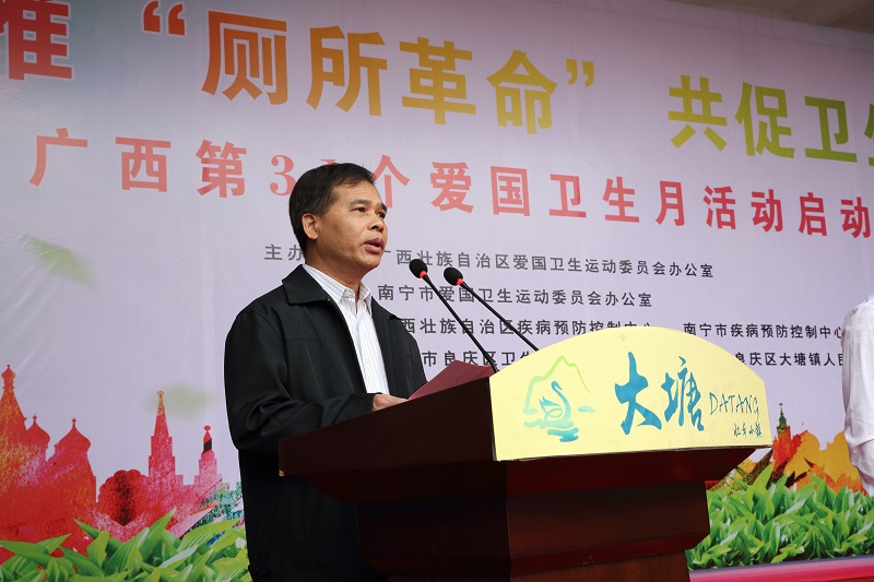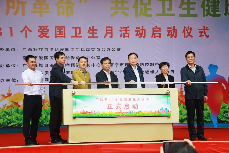 自治區衛生健康委副主任、黨組成員梁遠在啟動儀式上發言,指出在自治區黨委、政府高度重視和正確領導下,我區堅持從人民群眾的健康需求出發,多部門聯合開展農村戶廁改革、衛生城鎮創建、病媒生物防制、健康促進與教育等工作,使全區系列衛生創建工作取得了明顯的成效;但仍存在著農村廁所問題、城鄉人居環境維護發展不平衡、不充分等問題。他強調,各級、各部門要深入貫徹黨中央、國務院關于鄉村振興戰略和農村人居環境整治工作的決策部署,落實習近平總書記關于“廁所革命”的重要批示指示精神,做好宣傳、動員工作,推動愛國衛生運動創新和發展,全面推進健康廣西建設,以嶄新面貌迎接新中國成立70周年。
