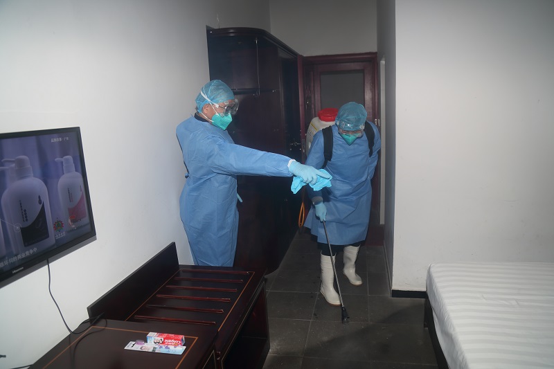 據了解,廣西首個“小湯山”醫院——自治區人民醫院邕武醫院臨時應急病房于2月16日正式啟用。為緩解醫院的壓力,作為密切接觸者醫學觀察點的銀林山莊,自密切接觸者到期撤離后被臨時征用安置邕武醫院一線醫護人員入住。自治區疾控中心接到消殺任務后十分重視,中心主任林玫作出指示,要求中心迅速組織專業消毒隊伍,準備好消毒用具,做好防護措施,對銀林山莊進行全面規范化終末消毒。中心副主任趙鵬親臨現場指揮部署,確保銀林山莊安全順利投入使用。