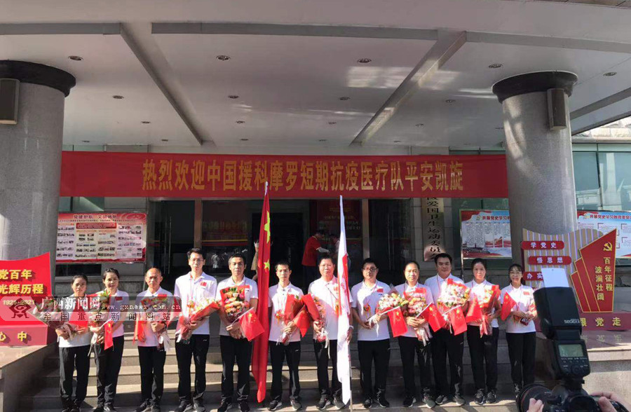 中國援科摩羅短期抗疫醫療隊由自治區衛生健康委、自治區人民醫院、自治區南溪山醫院、自治區疾控中心、廣西中醫藥大學第一附屬醫院、自治區衛生健康對外交流合作中心等6個單位派員組成,醫療隊專家涵蓋了衛生外事管理、醫院管理、呼吸、重癥、院感、中醫、護理、公共衛生、實驗室檢測、器械維修、法語翻譯等多個專業領域。