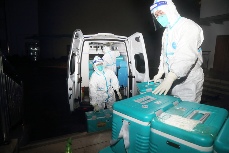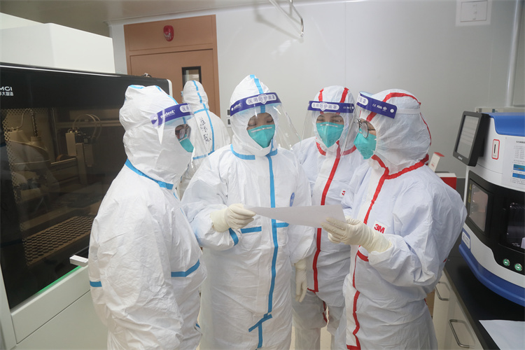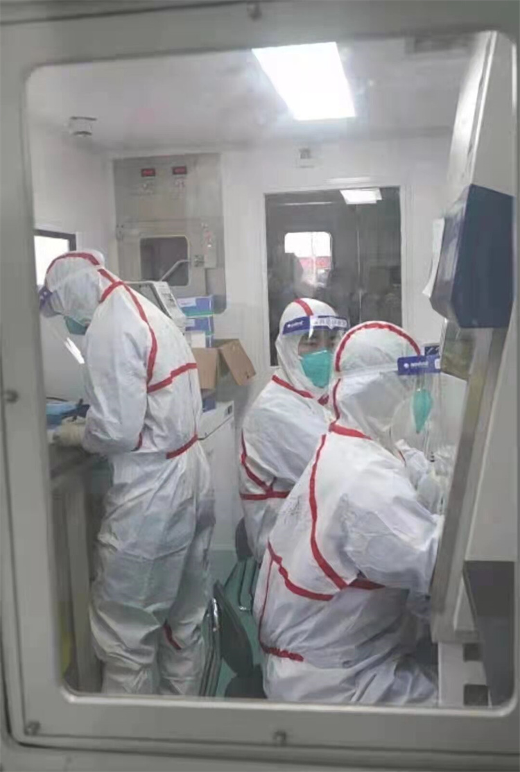 試劑立刻調配,設備立刻調試,人員立刻分工。經過3個多小時緊張忙碌的籌備,一切工作準備就緒。7日晚9時50分,2輛裝載核酸檢測樣本的運輸車從德保縣運抵中心,在寒冷的冬夜里,穿戴完備的檢測人員冒著微微冷雨,將從疫區運送來的65箱檢測樣本一箱箱搬運至實驗室。當晚,實驗室內燈光通宵達旦地亮著,檢測人員全副武裝,身著密不透風的醫用防護服,凝神聚力地奮戰在各檢測環節中,與病毒爭分奪秒地賽跑,陪伴他們的有明亮的燈光和不斷作業的儀器設備運轉聲和自治區新冠肺炎領導小組指揮部的期待。核酸檢測是一項有極強專業性的工作,從樣本接收、試劑配置,到樣本制備、數據上報等每一環節的操作都要細心嚴謹,容不得有絲毫差錯。大家心里唯一盼望的就是早一分鐘檢測出結果,更快一點幫助流調、消毒等一線人員去遏制病毒擴散。