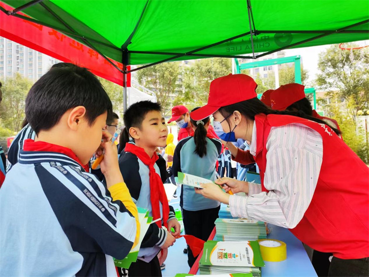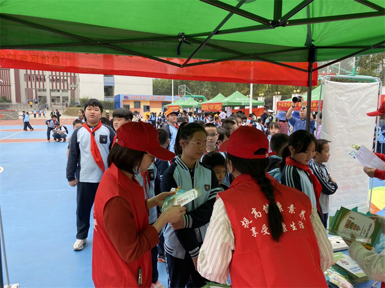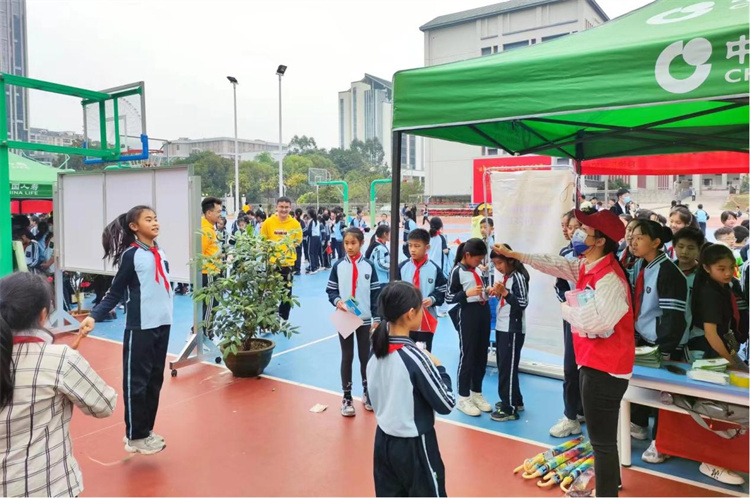 表演活動結束后,孩子們來到中心學雷鋒志愿者服務展臺,開展游園活動。在自治區疾控中心的展臺里面,中心志愿者服務隊隊員和學生們開展健康知識小互動。志愿者們向學生們科普學生每日營養需求,耐心的講解預防近視小方法,開展戶外跳繩趣味活動,指導學生們培養戶外活動的健康生活方式。同學們熱情互動參與,體驗快樂,收獲知識,充滿著歡聲笑語。